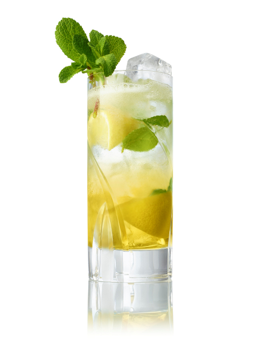 1 diel Drambuie, 1 naberačka ľadových kociek, pol citrónu, 8 mätových lístkov, 2 diely sódovky