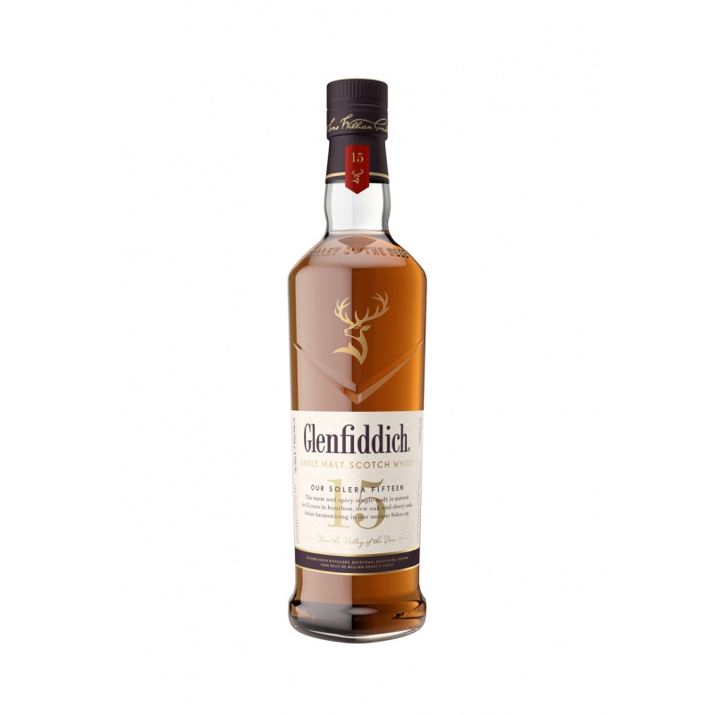 Glenfiddich 15 rokov zreje v troch druhoch sudov metódou Solera. Výsledná chuť je hodvábne krémová, ľahko korenistá s náznakmi čokolády, orechov, moka, karamelu, medu a hrozienok. Záver: smotanový s náznakom zázvoru.